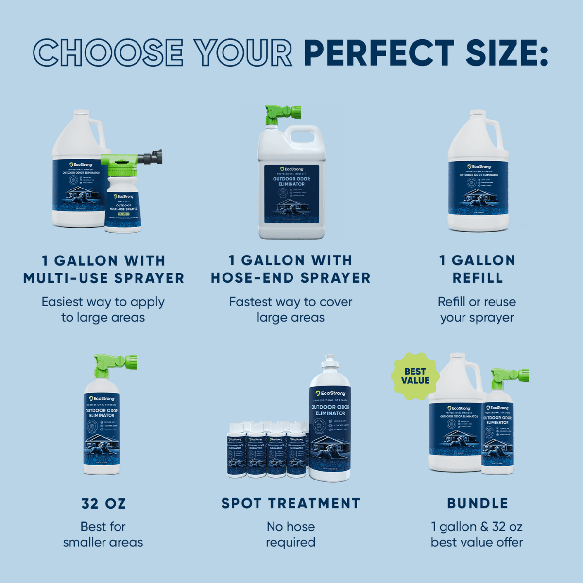 Natural odour counteractants and a light lemon eucalyptus fragrance offer instant odour relief. At the same time, billions of natural bacteria and enzymes break down the smelly organic waste eliminating it for good. Safe for use on turf, grass, gravel, dirt, concrete and more. When you’ve tried everything else, and nothing has worked, EcoStrong will get the job done.Â